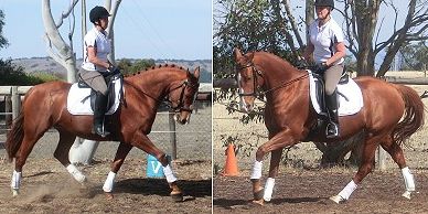 Bravo was bred by Sally Haxwell of Inverwood Stud. He is by Northern Romulus who was by Falkland Victory out of Arnhem Dutch WB mare. Romulus had just reached Prix St Georges and had won the Advanced at the Fleurieu Championships when he developed colic and died following surgery. Sally kindly offered me Bravo the day after Romulus died and I purchased him at five weeks of age. His dam carries the famous Salute lines on her sire's side and his grand-dam's lineage goes back to Precipitation who has been an outstanding TB sire of jumping horses.